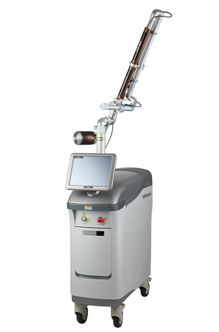 어븀 · 색소 레이저 erbium 수분 흡수에 최적화된 파장을 이용해 표피를 정밀하게 제거하고 재생을 유도하여 색소 병변과 광노화를 개선하는 표피 박피 레이저 장비입니다. 피부 박피 기미·잡티 개선 광노화 치료