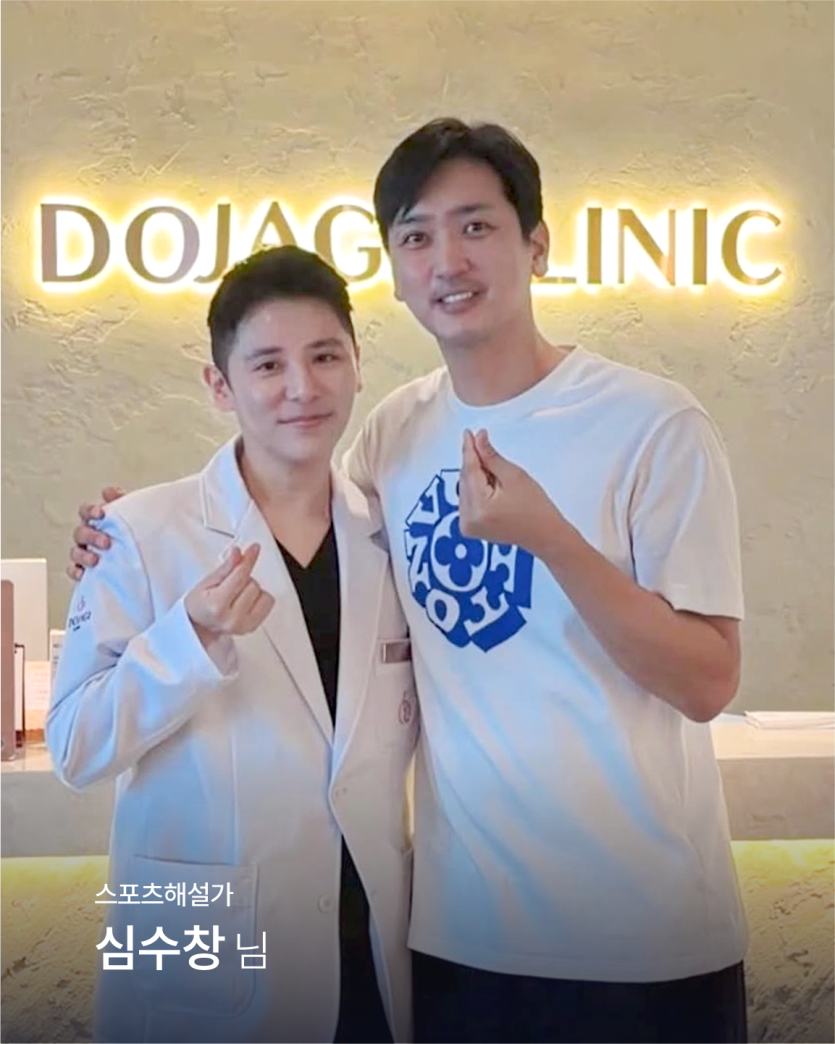 스포츠 해설가 심수창 페이지 정보 목록 본문 저희 도자기의원과 맺어주신 소중한 인연에 진심으로 감사드립니다. 심수창님의 건강한 아름다움이 더욱 빛날 수 있도록, 도자기의원이 항상 곁에서 응원하겠습니다.♥ 이전글배트남 축구 국가대표 코치 이운재 26.04.22 다음글배우 최창민 26.04.22