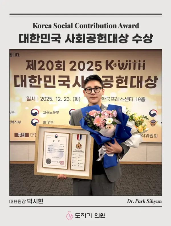 Dr. Park Sihyun, Chief Director of Dojagi Clinic, has received the Minister’s Award in the Medical Category at the 2025 Korea Social Contribution Awards.